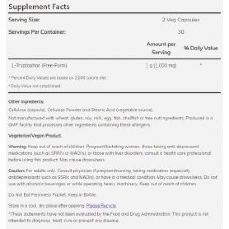 - NOW Foods - L-Tryptophan 500 mg Veg 60 tabs Now foods